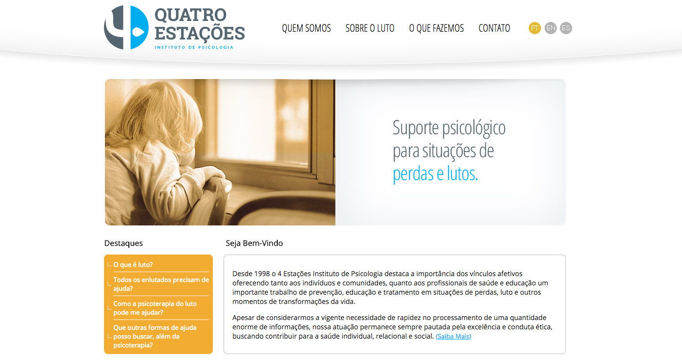 4 Estações é um Instituto de Psicologia que faz um importante trabalho de prevenção, educação e tratamento em situações de perdas, luto e outros momentos de transformações da vida. No site você encontrará notícias, cursos e publicações diversas sobre o tema.
