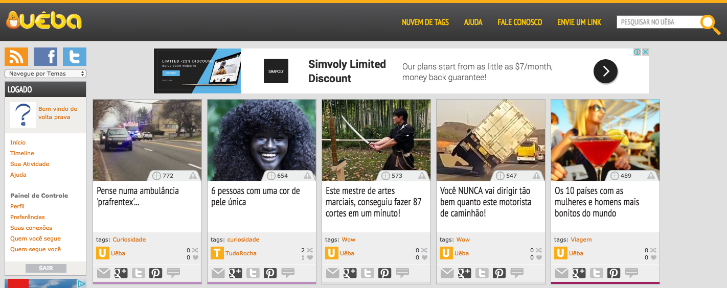 Uêba é um agregador social de conteúdo, ou melhor dizendo, um agregador de links de diversos sites. Nele você pode enviar gratuitamente links do seu blog para divulgação, basta ser cadastrado.